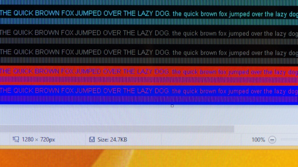 4:4:4는 각 픽셀이 색상 값을 가지고 있기 때문에 텍스트를 보일 때 번짐이 보이지 않습니다. 반면 4:2:0은 검은 바탕일 경우 선명하게 표현이 되지만, 붉은 색 또는 파란 색 위에 쓰여있는 텍스트는 선명도가 좋지 않습니다. 해서 대부분의 TV 회사에서는 크로마 샘플링을 쉽게 설명하기 위해 ‘텍스트가 선명합니다’로 함축하는 것이지요.