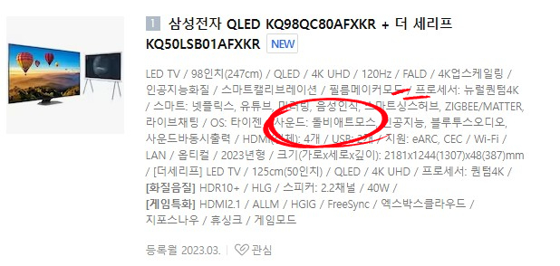 핵심은 애트모스를 사용하려면 애트모스 지원 TV가 있어야하지만 반대로 애트모스 지원 TV가 있다고 하여 그냥 애트모스 기능을 사용할 수 있는 건 아니라는 점을 명심하시고 사용환경에 따라 이 기능을 탑재한 TV를 선택할 가치가 있는지 직접 판단하는 것이 중요합니다.