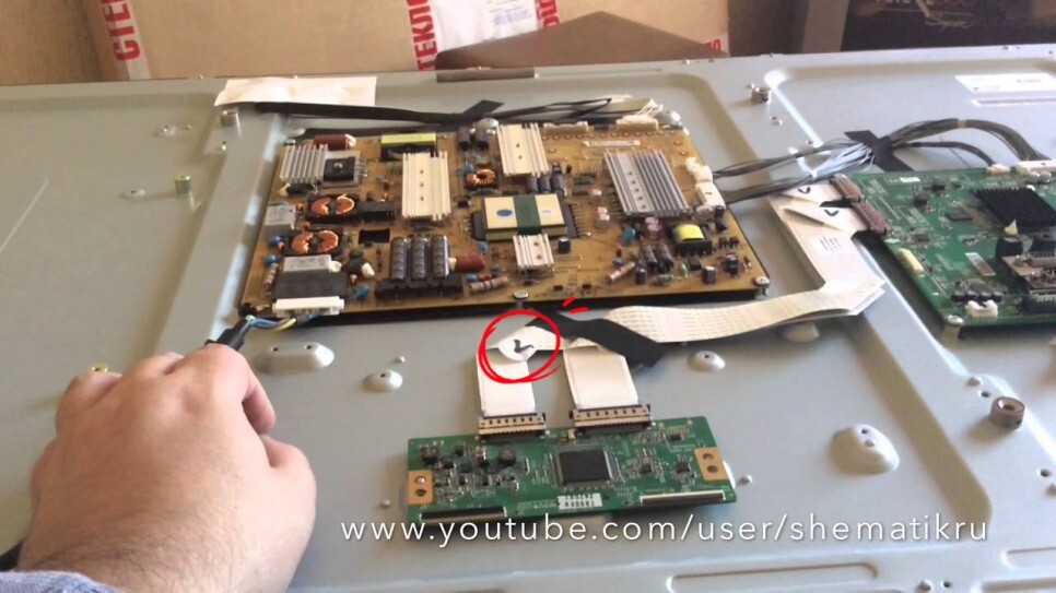 당연한 얘기지만 TV 후면은 제조사와 제품 별로 다른 모양이긴 하지만 대부분 위와 같은 구성으로 이루어져있습니다. 갈색 바탕에 있는 것이 전원보드이고, 녹색 바탕이 메인보드입니다. 전원보드는 여간해서 문제가 발생하지 않지만, 낙뢰나 갑작스런 전원 차단, 내부 열 발생으로 문제가 생기는 경우도 있으니 부풀어 오른 것이 없는지 확인해 보시길 바랍니다.